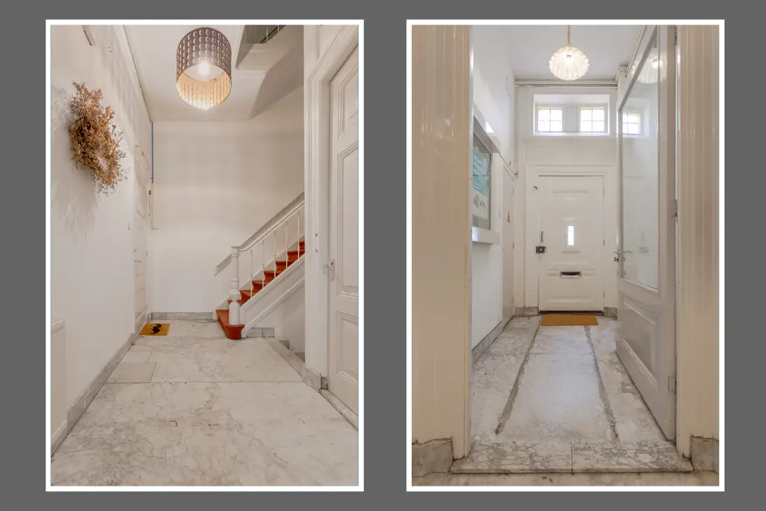 Het huis bestaat uit een vier etages, een kelder en een tussenverdieping. De achtertuin is gelegen op het Westen en is 137 m².