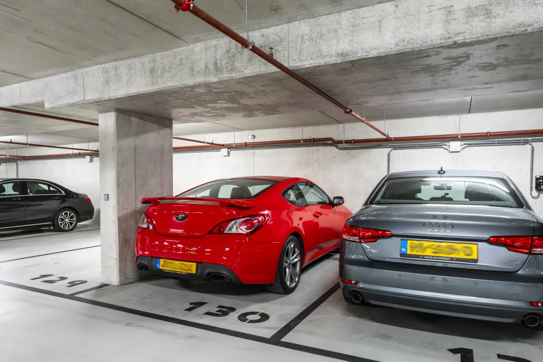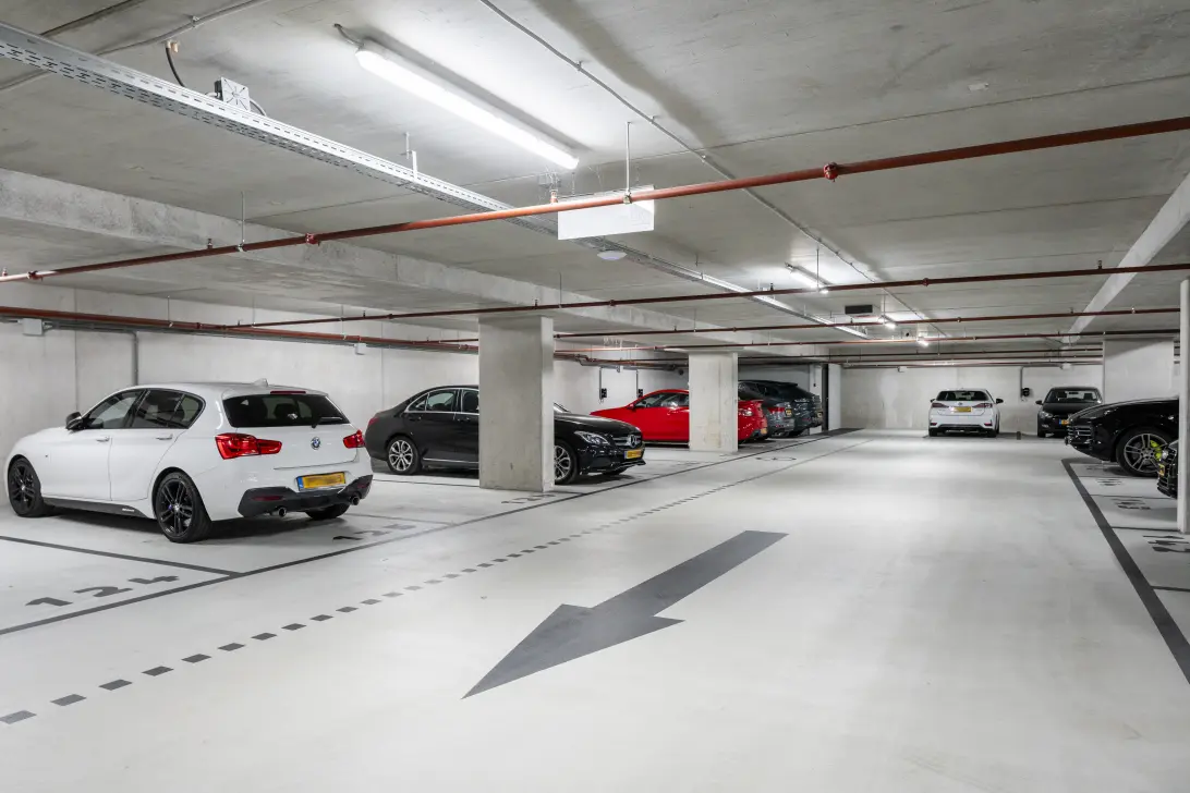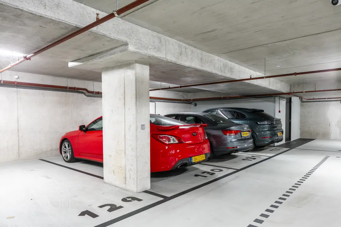 In de afgesloten parkeergarage van woontoren Bold is deze parkeerplaats beschikbaar. De parkeerplaats is gelegen op -1.