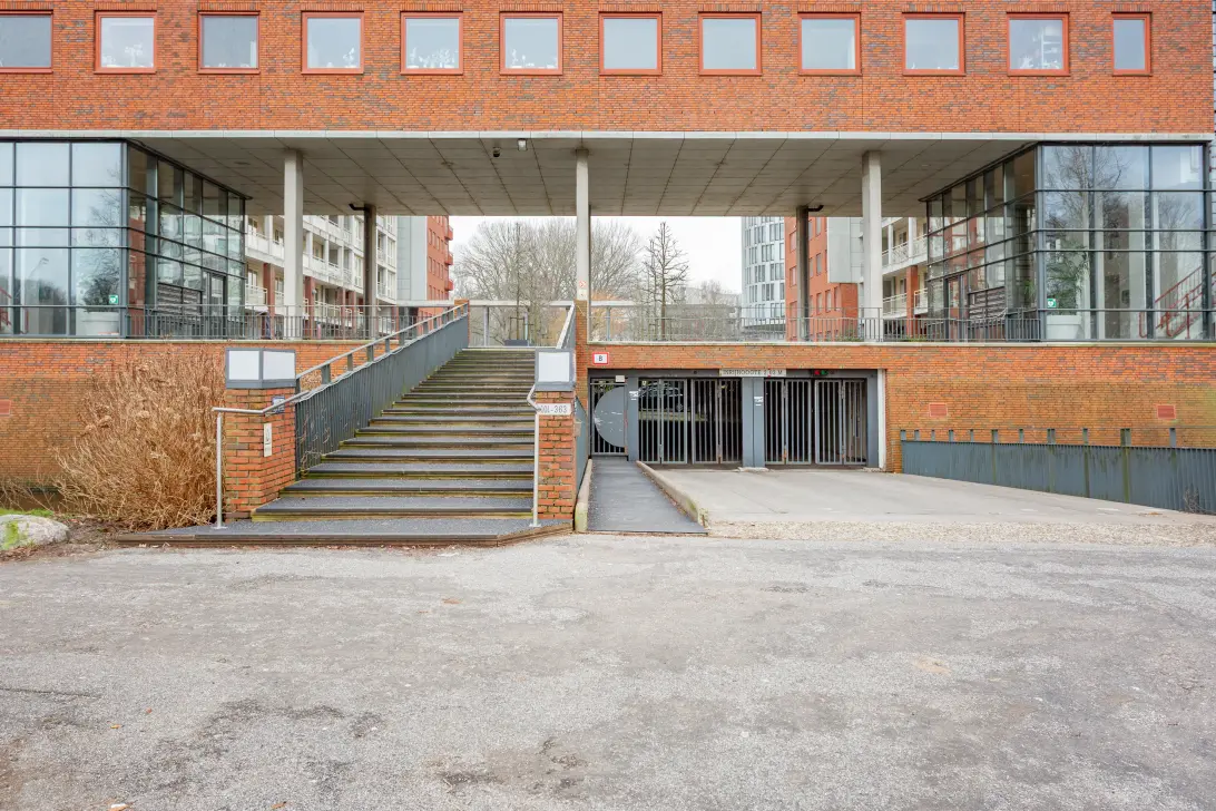 The parking space is located beneath a residential complex on central Haveneiland in the IJburg district, with the entrance on Kiekstraat. The garage is secured by an electric door.