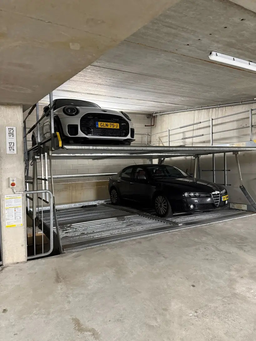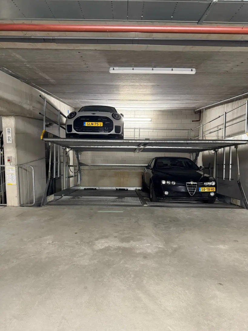 Verwarmde parkeerplaats (liftsysteem) in parkeergarage onder het woon/werkcomplex Quartier Latin gelegen in de Rustenburgerstraat-Kuipersstraat.