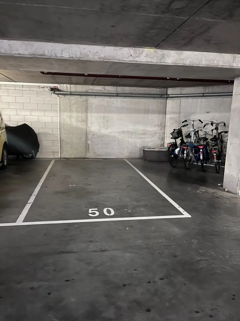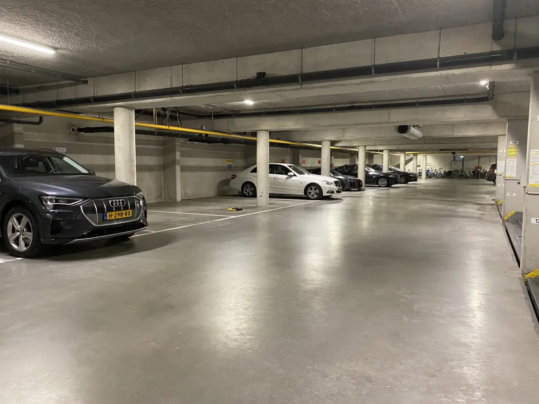 Private parking (24-hour) comfortably situated on own ground in gated car park of building Valckhof. The parking garage is locked by means of an electric speed gate, is well lit and also secured with camera surveillance.