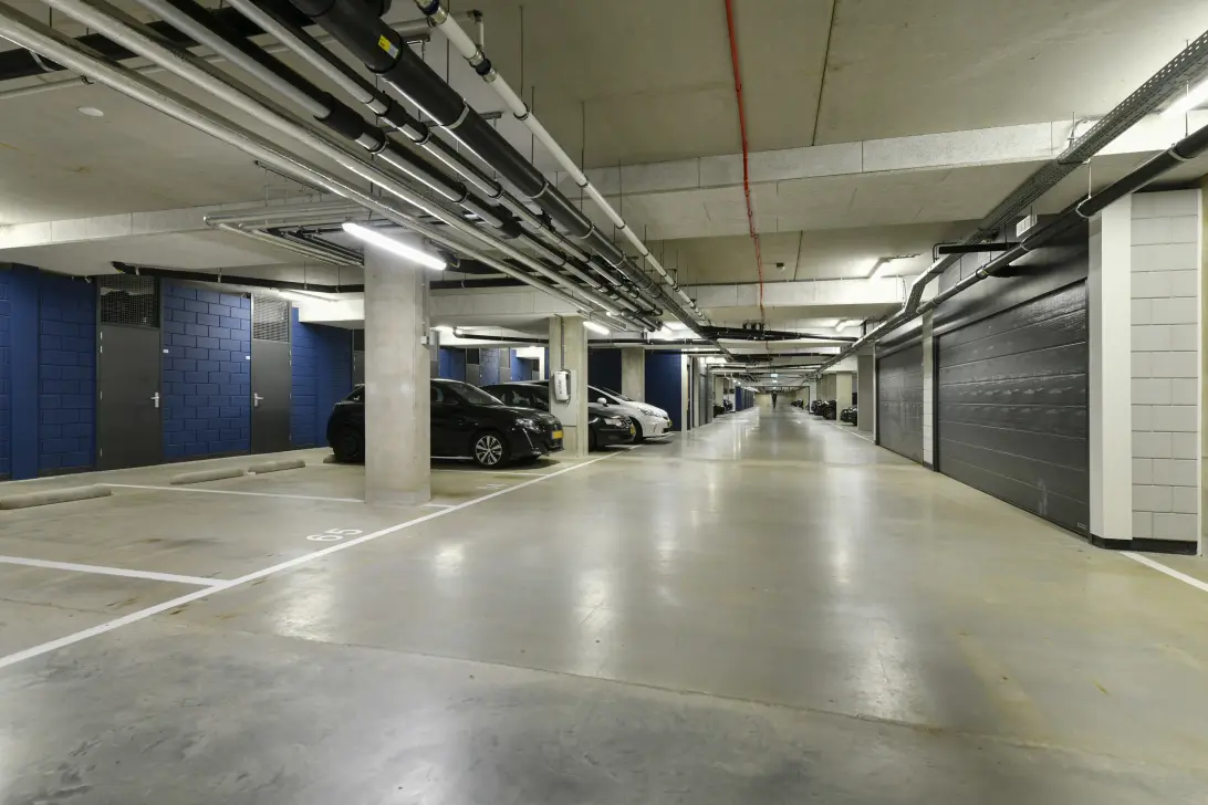 Parkeerplaats in de kelder van het complex "Wibautstraat/Burmandwarsstraat" (Ingang aan de Wibautstraat). De afgesloten garage is voorzien van een op afstand te openen deur. Het complex is gelegen op korte afstand van de Pijp en het Oostelijke deel van het Centrum.