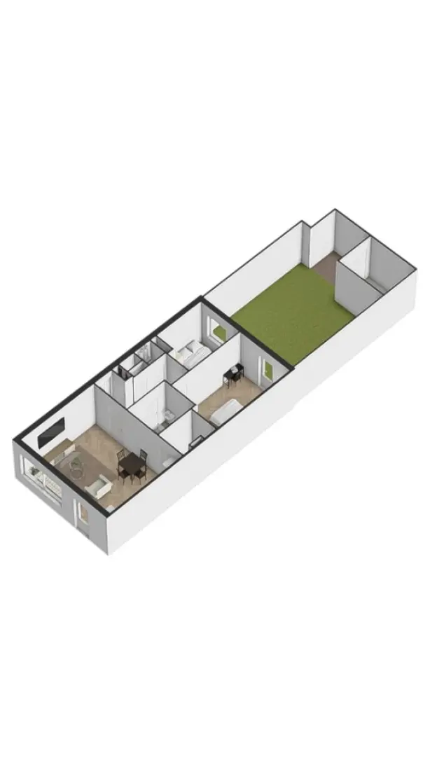 De tuin met berging is praktisch bereikbaar via een achterpad, wat zorgt voor extra gemak. Centraal in de woning liggen de badkamer en de inpandige berging met ruimte voor de wasmachine, slim en efficiënt ingedeeld. Een bijzonder compleet appartement op een unieke plek – comfortabel, doordacht en heerlijk om thuis te komen.