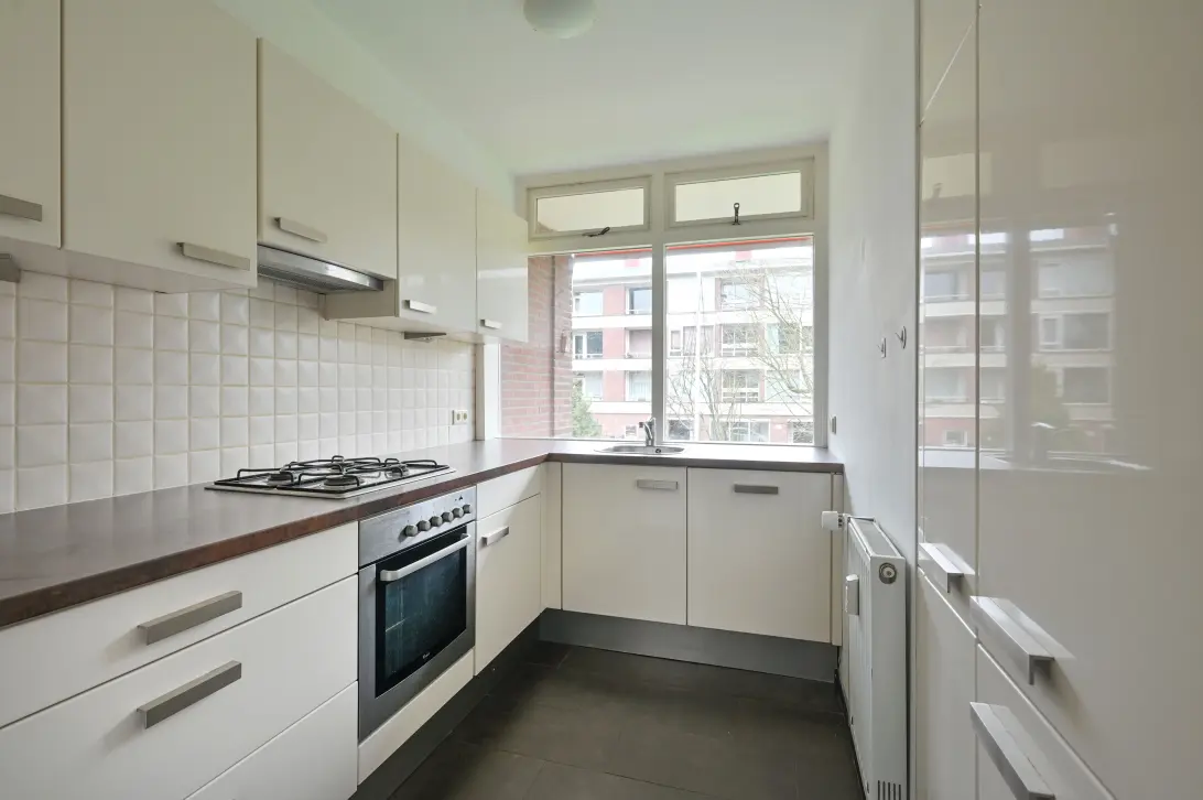 In Bussum-Zuid gelegen licht en ruim appartement op de eerste verdieping, met 3 balkons waarvan een op het zuiden. Rustig gelegen en voorzien van groen aan beide kanten.