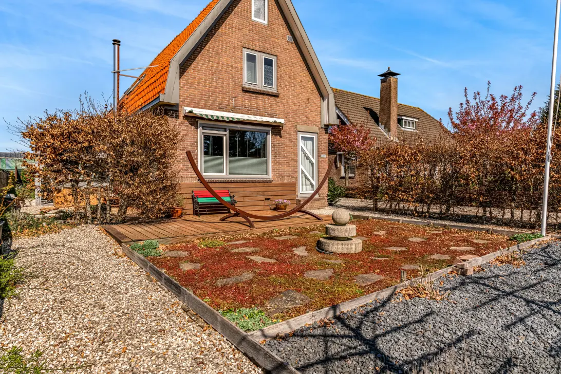 De achtertuin is beschut, maar beperkt in ruimte. De zijtuin met serre bevindt zich op het zuid-westen. De ruime voortuin biedt de mogelijkheid voor het parkeren van uw auto.