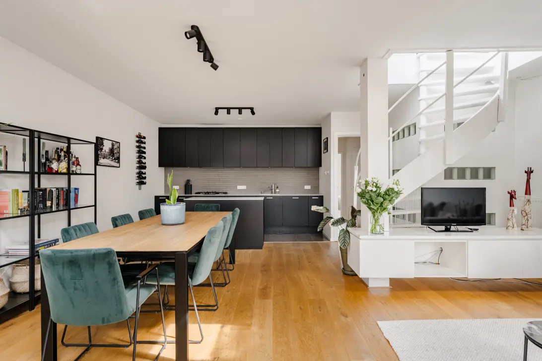 Stylishly finished apartment of 94 m², located on the top floor, featuring a generous rooftop extension and a sunny roof terrace of no less than 22 m². This apartment combines space, comfort, and a prime location in Amsterdam West. And best of all: it’s on freehold land – so no ground lease!