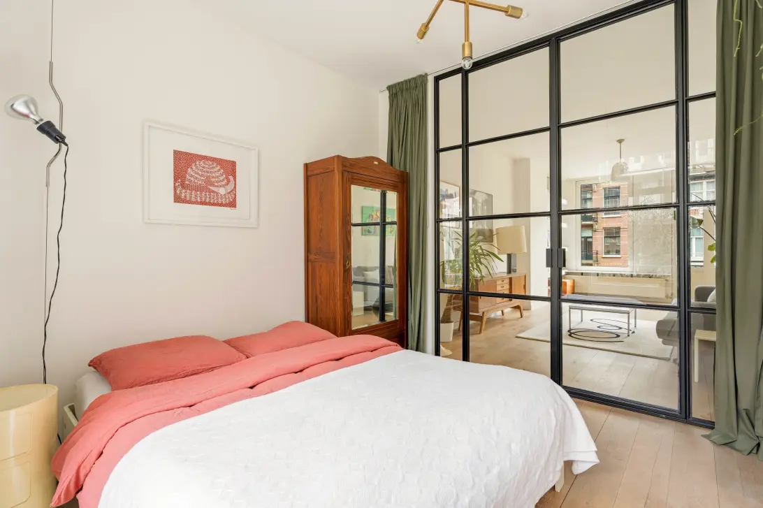 De woning beschikt over twee slaapkamers. De grootste slaapkamer ligt aan de achterzijde en heeft directe toegang tot het balkon. De tweede slaapkamer aan de voorzijde is ideaal als kinderkamer, werkkamer of logeerkamer.