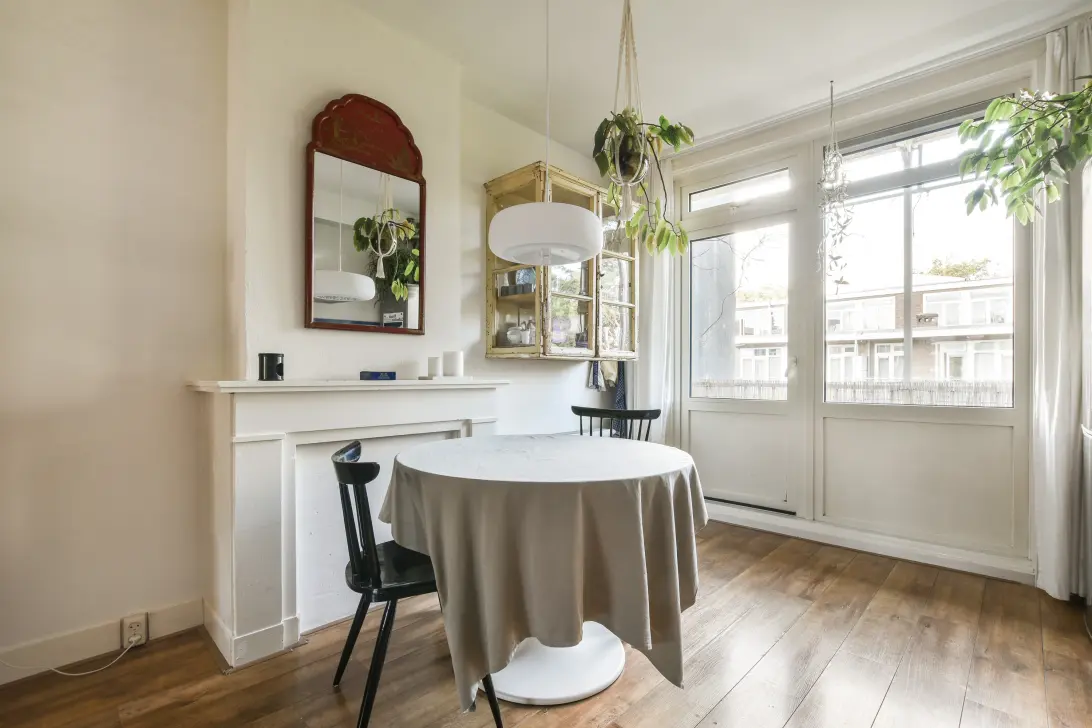 De woning heeft een uitstekende ligging in West, met voldoende parkeergelegenheid. Voor dagelijkse boodschappen zijn de bruisende Jan Evertsenstraat, Jan van Galenstraat en de Ten Kate Markt dichtbij. De buurt biedt daarnaast gezellige horeca en culturele hotspots zoals de Hallen.