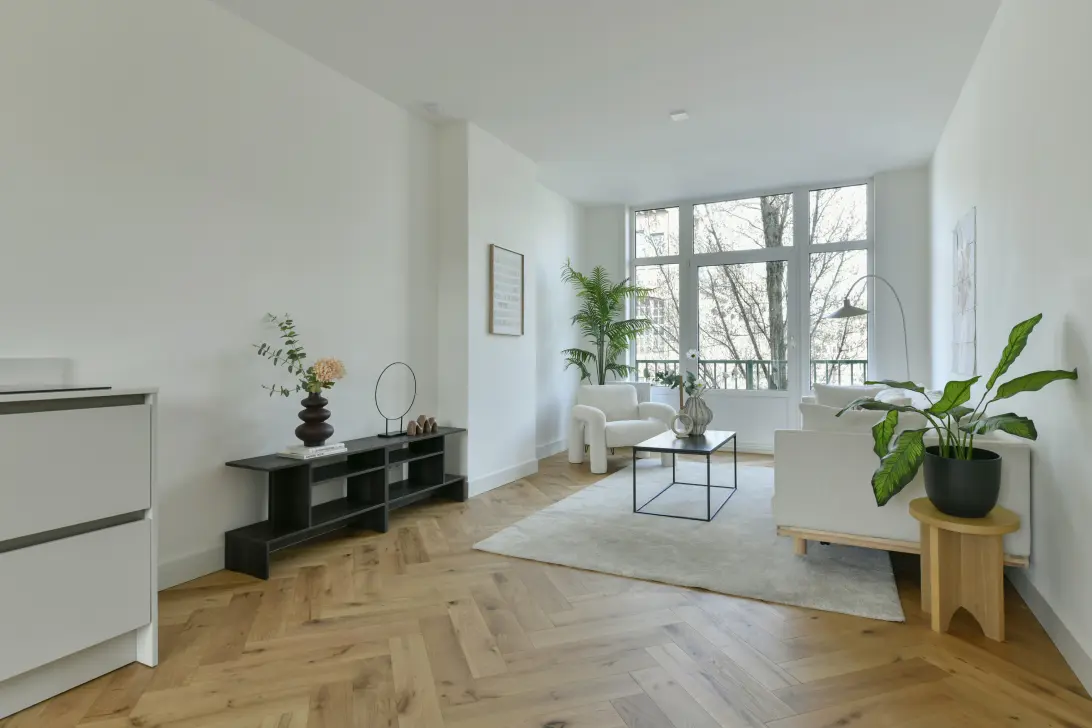 -The living room is spacious. There is ample room for a generous seating area and a lovely large dining table. There is a balcony at both the front and rear of the living room. On the street side is a slightly smaller balcony, and at the rear is a large south-facing balcony. A lovely spot for drinks and dining. From the balcony, you look out over the Slatuinen Nature Garden, a unique part of Amsterdam, with many unusual plants, flowers and birds.