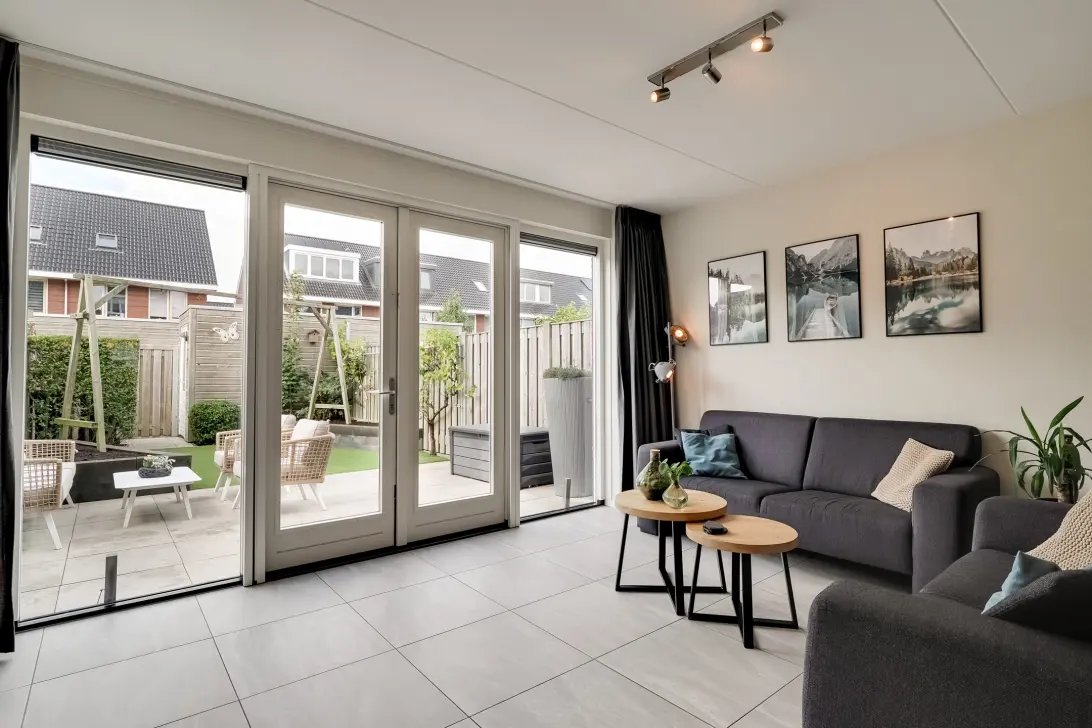 Openslaande tuindeuren bieden directe toegang vanuit de woonkamer naar de tuin. De achtertuin is gelegen op het zonnige zuidwesten. Daarnaast is de tuin bereikbaar via een toegang achterom en voorzien van een praktische houten berging.