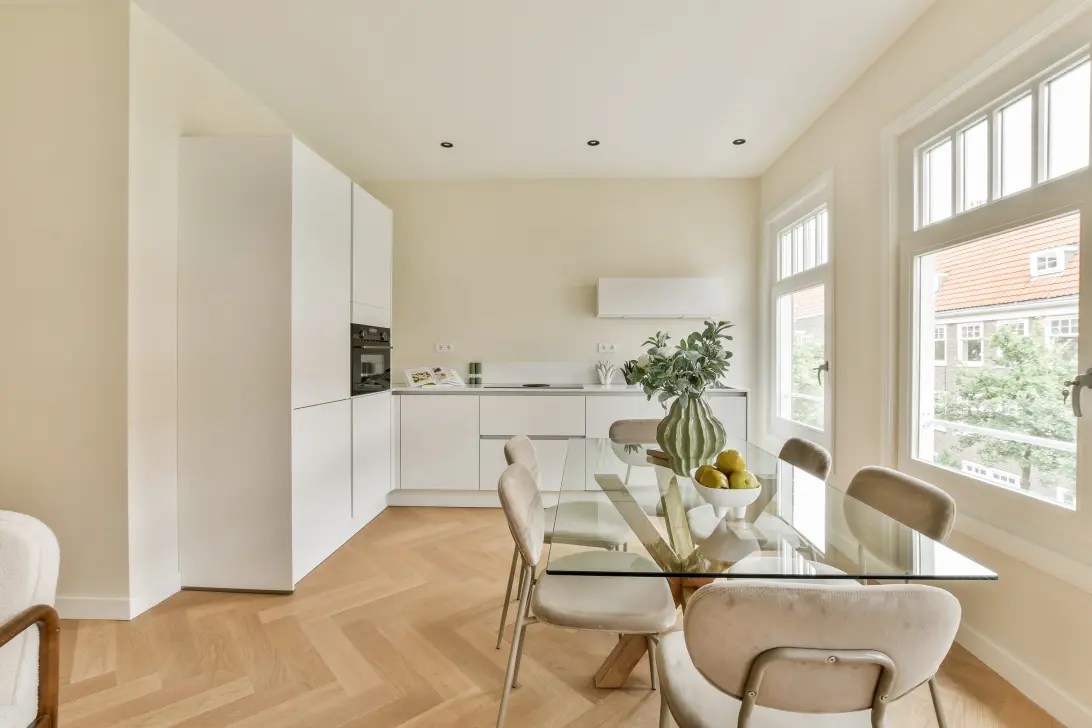 During renovation, great attention was paid to details, finishing and insulation. All flats have oak flooring laid in a herringbone pattern. There is also underfloor heating with different zones. The flats were not only renovated internally, but the entire property was also thoroughly renovated. From the facades to the roof and everything in between has been renewed and modernised including the foundation. In terms of insulation, the maximum was done within the possibilities of a classic building. By applying these materials, all residences have received at least an A energy label!