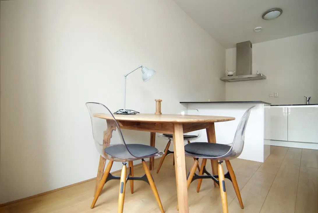 The apartment is located on the second floor and features a spacious, bright living room thanks to three large windows, with views over the always lively Albert Cuyp Market. The open, modern kitchen is equipped with a 4-burner gas stove, dishwasher, fridge with freezer compartment, and a kitchen island with bar.