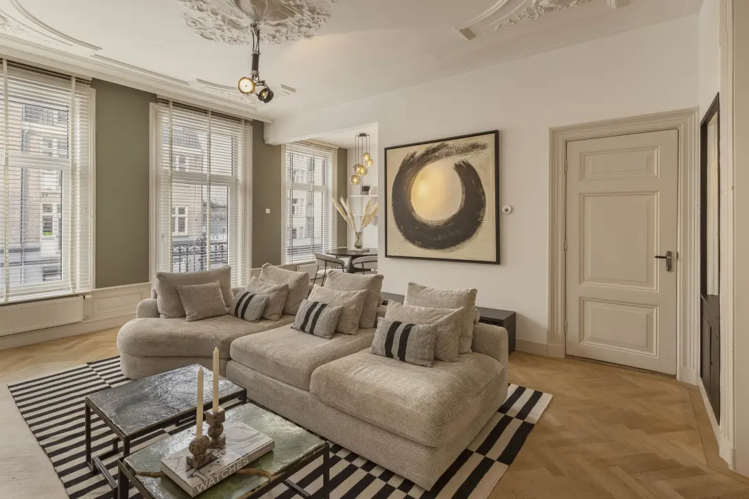 Elegant apartment of approximately 90 m², featuring two bedrooms, high ceilings, original decorative details and a west-facing French balcony. Spread across a single floor with a private entrance, the home benefits from an abundance of natural light. Situated in a lively and vibrant part of De Pijp, with a wide variety of shops, restaurants and cultural venues all within walking distance.