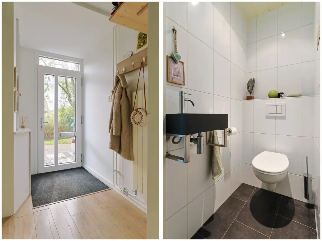 De lichte hal met vernieuwde groepenkast (2024) biedt toegang tot het hangend toilet met fonteintje. De uitgebouwde woonkamer aan de achterzijde beschikt over een schuifpui naar de knusse achtertuin, waar je kunt genieten van de middag- en avondzon. Achter de tuin bevindt zich de speeltuin – ideaal voor jonge gezinnen.