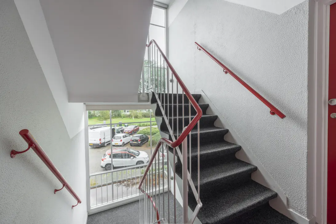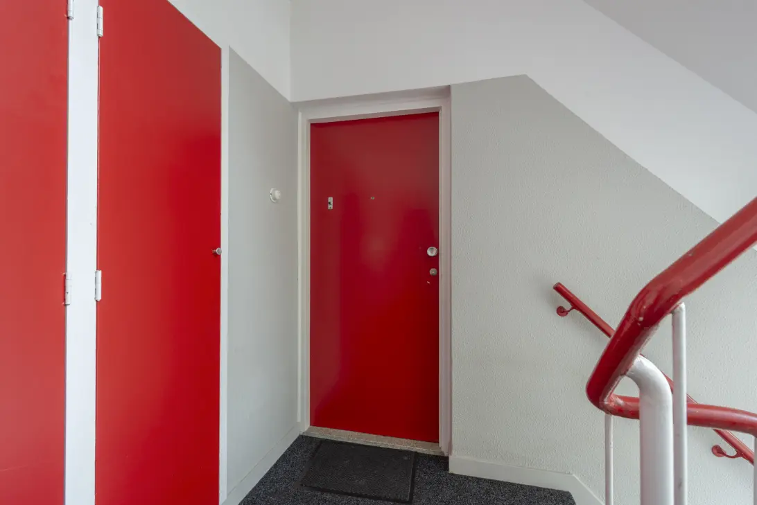 Deze ruime en sfeervolle woning maakt onderdeel uit van een kleinschalig appartementencomplex uit 1968 en bevindt zich op de tweede verdieping. Niet veel trappen want vanwege het ontwerp van het gebouw, is de voordeur al binnen twintig treden bereikbaar.
