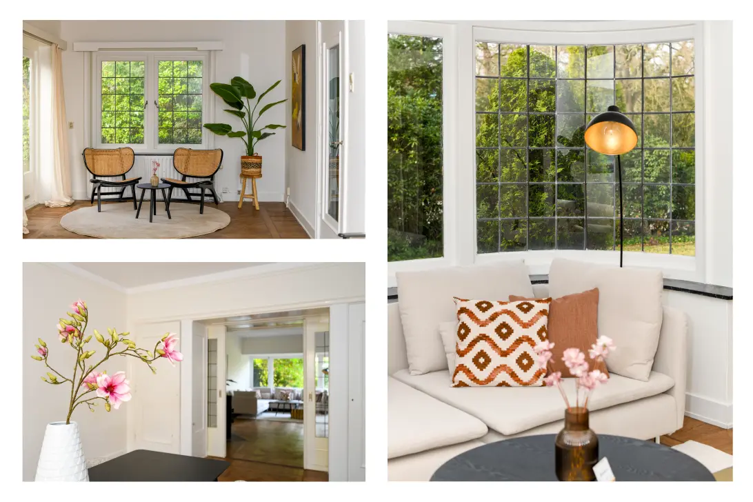 - Grote en sfeervolle woonkamer, met halfronde erker en fijne zijkamer met openslaande deuren naar de tuin