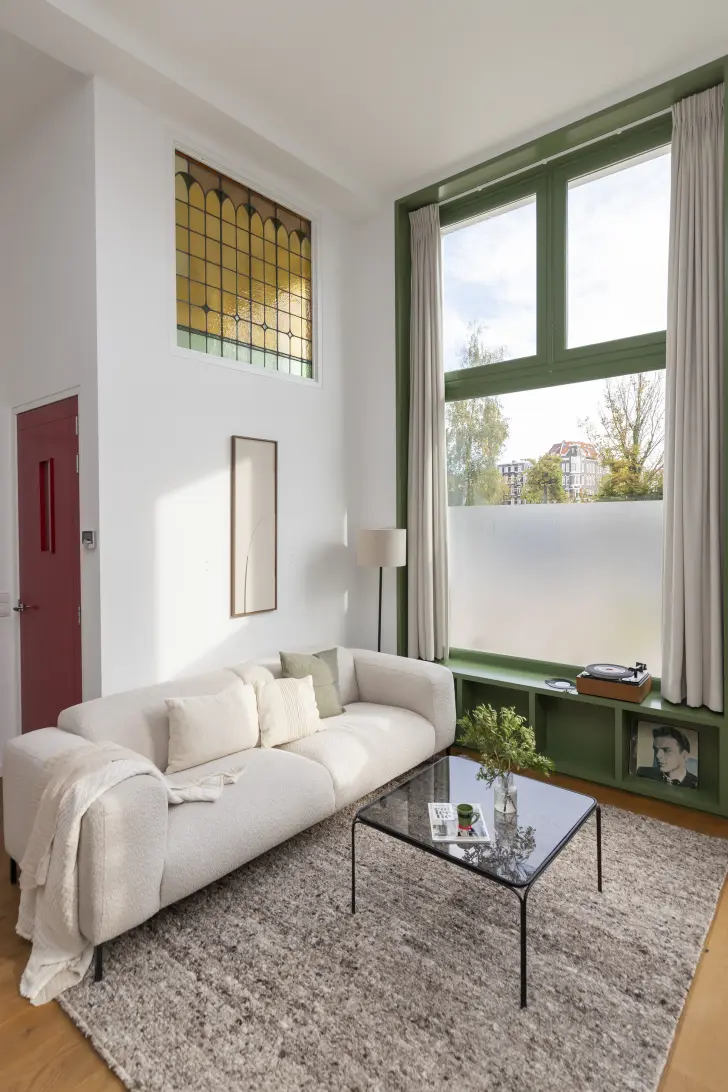 Hoge plafonds en grote raampartijen met veel lichtinval