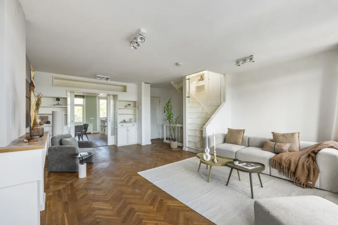 Word elke dag wakker met uitzicht op de Amstel. Dit charmante appartement biedt een warme sfeer, een unieke indeling en volop ruimte om te genieten – binnen én buiten.
