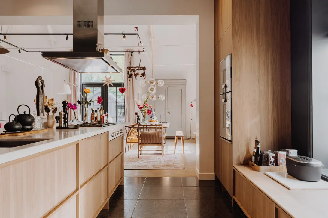Tijdens de zorgvuldige renovatie hebben de huidige eigenaren, samen met Flow Works, op een bijzondere wijze vorm gegeven aan het idee van de stad, in combinatie met het gevoel van het buiten leven in een dorp. Opvallend zijn de hoge dubbele deuren die zorgen voor maximaal licht en een open verbinding tussen de ruimtes, met ingetogen kleurgebruik en sfeer, geïnspireerd door het klassieke Corso Como Milaan.