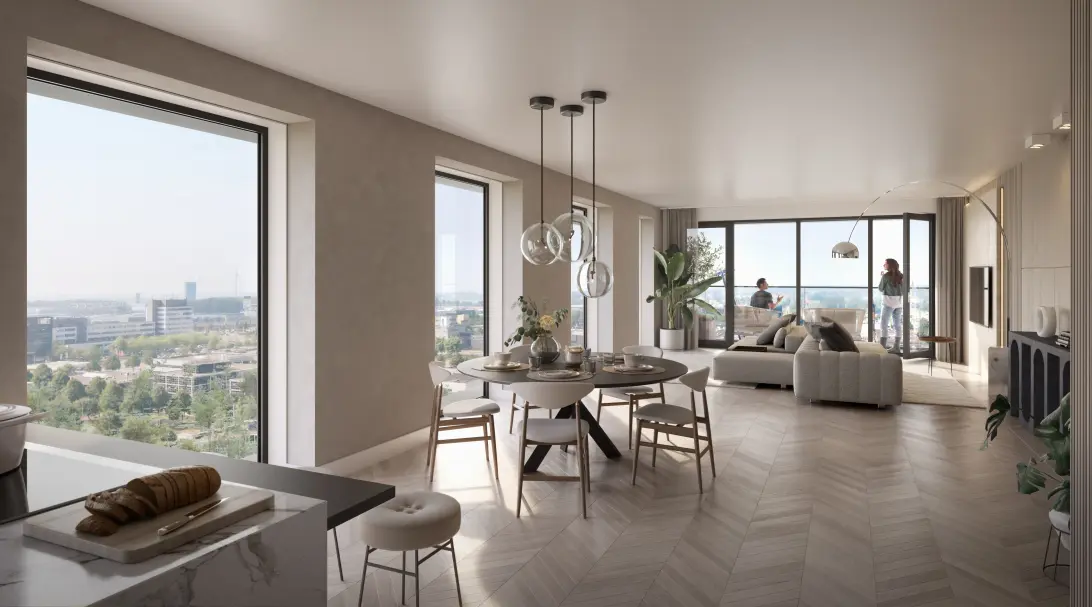 Veel Licht en Gemeenschappelijke Binnentuin: De woning is uitzonderlijk licht dankzij de grote ramen, en je hebt toegang tot een gemeenschappelijke binnentuin, perfect voor sociale ontmoetingen en voor de kinderen.