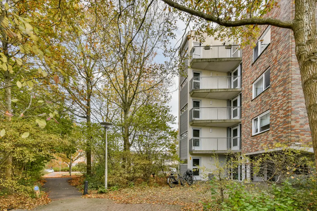 A very favorably located, bright, sunny, and ground-floor CORNER APARTMENT of approximately 86m² situated facing south. It features a spacious balcony with a view over the park. The apartment further includes 2 bedrooms (previously 3, and easily convertible back), a separate storage room, and is located on private land. The apartment is situated in the quiet, green Westwijk neighborhood in Amstelveen, perfect for those seeking both comfort and tranquility.
