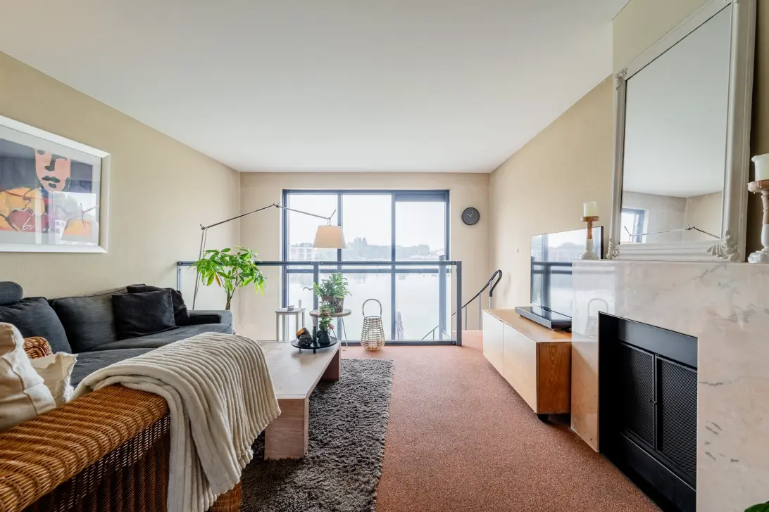 From the garden room or via the stairs in the hall you reach the first floor. Here you will find the bright living room, with an attractive fireplace with marble mantelpiece and beautiful views over the water. At the front is the spacious kitchen-diner, which lets in a lot of light thanks to the large windows and the French balcony. The modern kitchen is equipped with all necessary built-in appliances, including a 4-burner gas stove, extractor hood, dishwasher, oven, microwave and a fridge-freezer combination. In addition, the many cupboards and drawers offer plenty of storage space. In the middle of this floor is the hall with a staircase to the second floor.