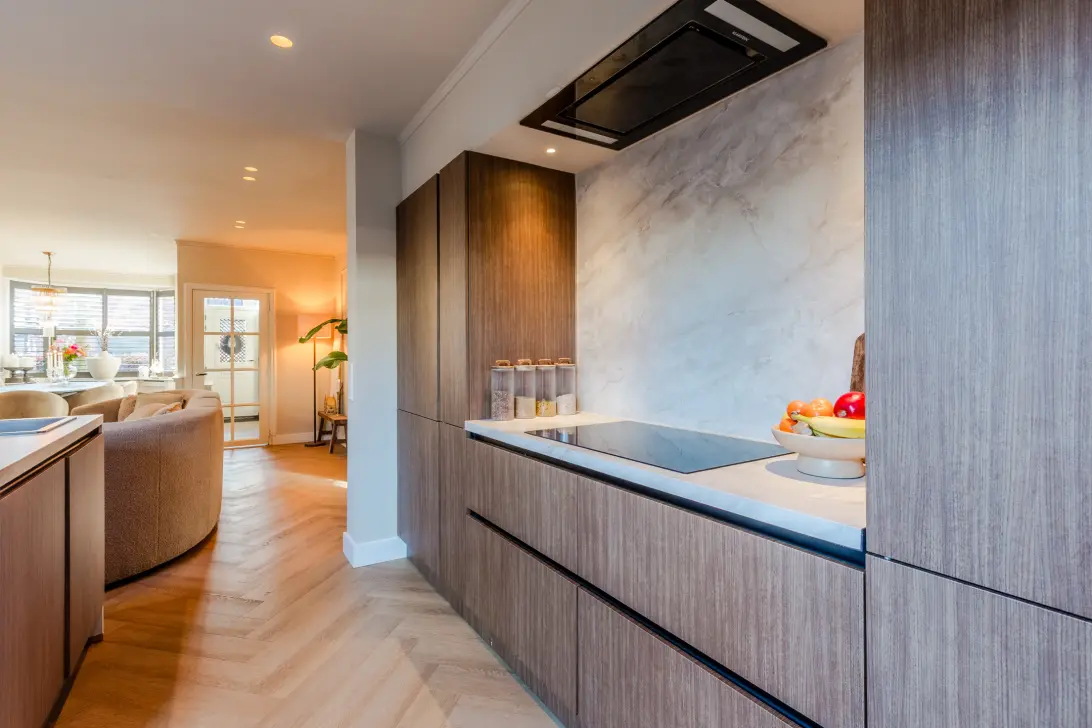 - prachtige woonkeuken met spoeleiland (met Quooker) en inbouwapparatuur zoals inductiekookplaat, vaatwasser, dubbele (combi)oven en koel-/vriescombinatie;