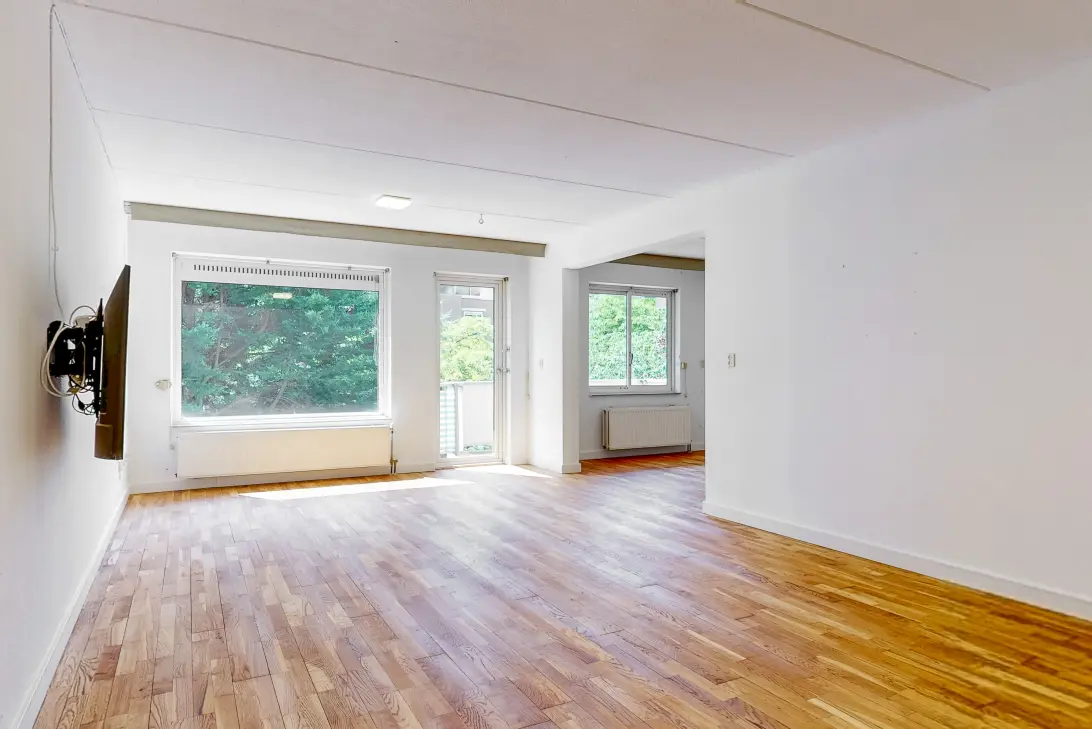 You enter the apartment through a spacious hallway that provides access to all rooms. The large, sunny living room facing south has access to both a bedroom/study and a cozy balcony. The master bedroom is generous and comfortable, while the second bedroom is also large enough for a double bed.