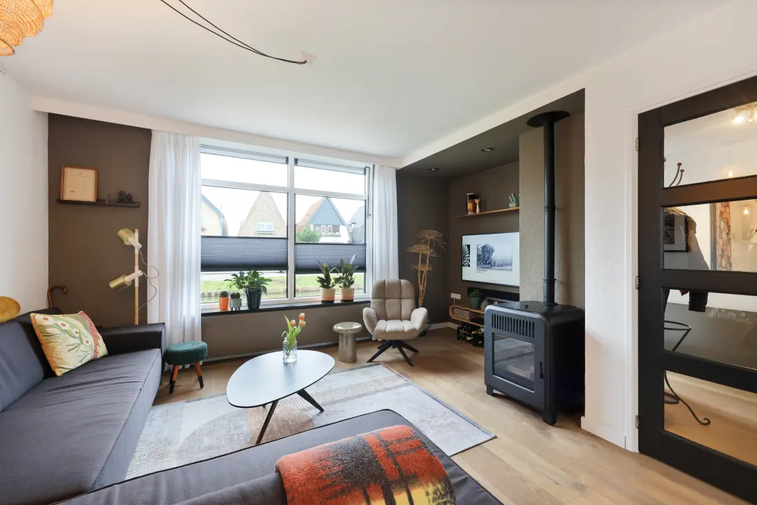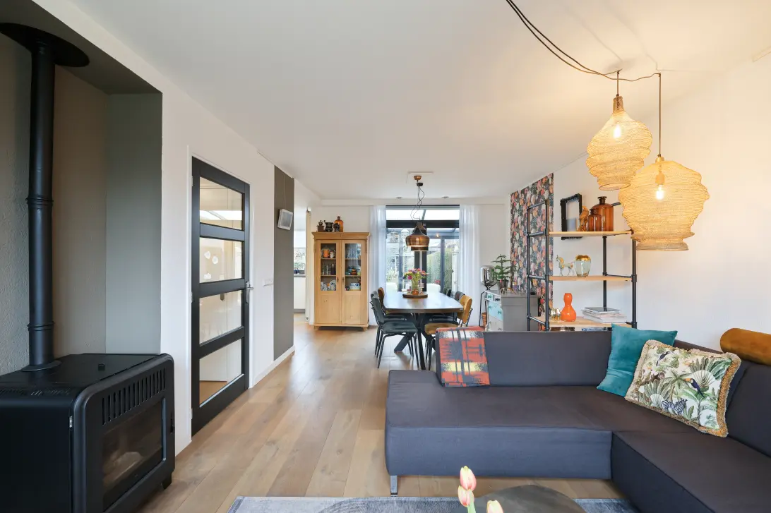 Via de entree kom je binnen in een verzorgde en lichte woning waar de aanbouw uit 1992 heeft gezorgd voor een flinke uitbreiding van de leefruimte. Hierdoor is een prettige en ruimtelijke indeling ontstaan die perfect aansluit bij het wonen van nu. De woonkamer voelt ruim en licht dankzij de grote raampartijen en de openslaande tuindeuren. De combinatie van kunststof kozijnen (2024) aan de voorzijde en bovenverdieping met HR en HR++ beglazing draagt bij aan het comfort en de energiezuinigheid, terwijl de pelletkachel naast de cv-installatie zorgt voor een aangename en sfeervolle warmte.