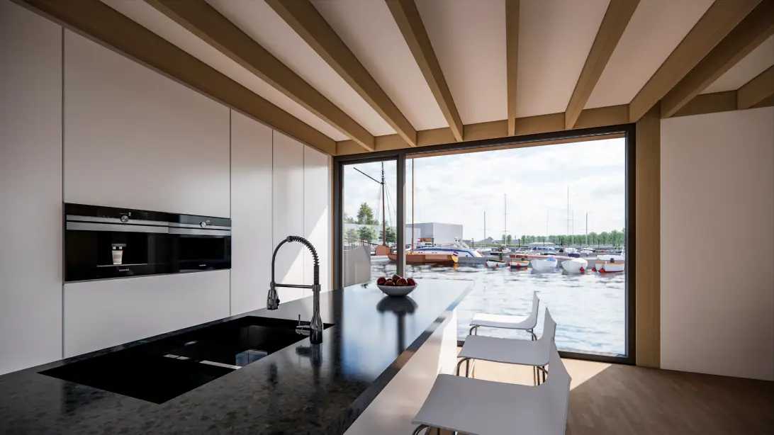 De Houthaven is doordrenkt met historie en was ooit het kloppende hart van de Zaanse houthandel. Eeuwenlang werden hier schepen vol hout uit Scandinavië en het Oostzeegebied gelost. Die bedrijvigheid en handelsgeest zijn vandaag de dag nog steeds voelbaar in de omgeving. Wonen aan deze kade betekent deel uitmaken van dit rijke verleden, terwijl je geniet van de moderne luxe die de woonark biedt. Wil je wonen op deze plek? Meld je dan snel voor deze fantastische nieuwbouw-woonark!