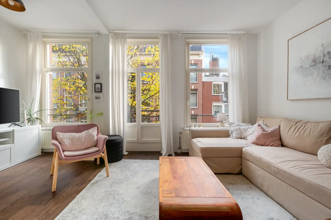 * Lichte woonkamer met Frans balkon aan de voorzijde