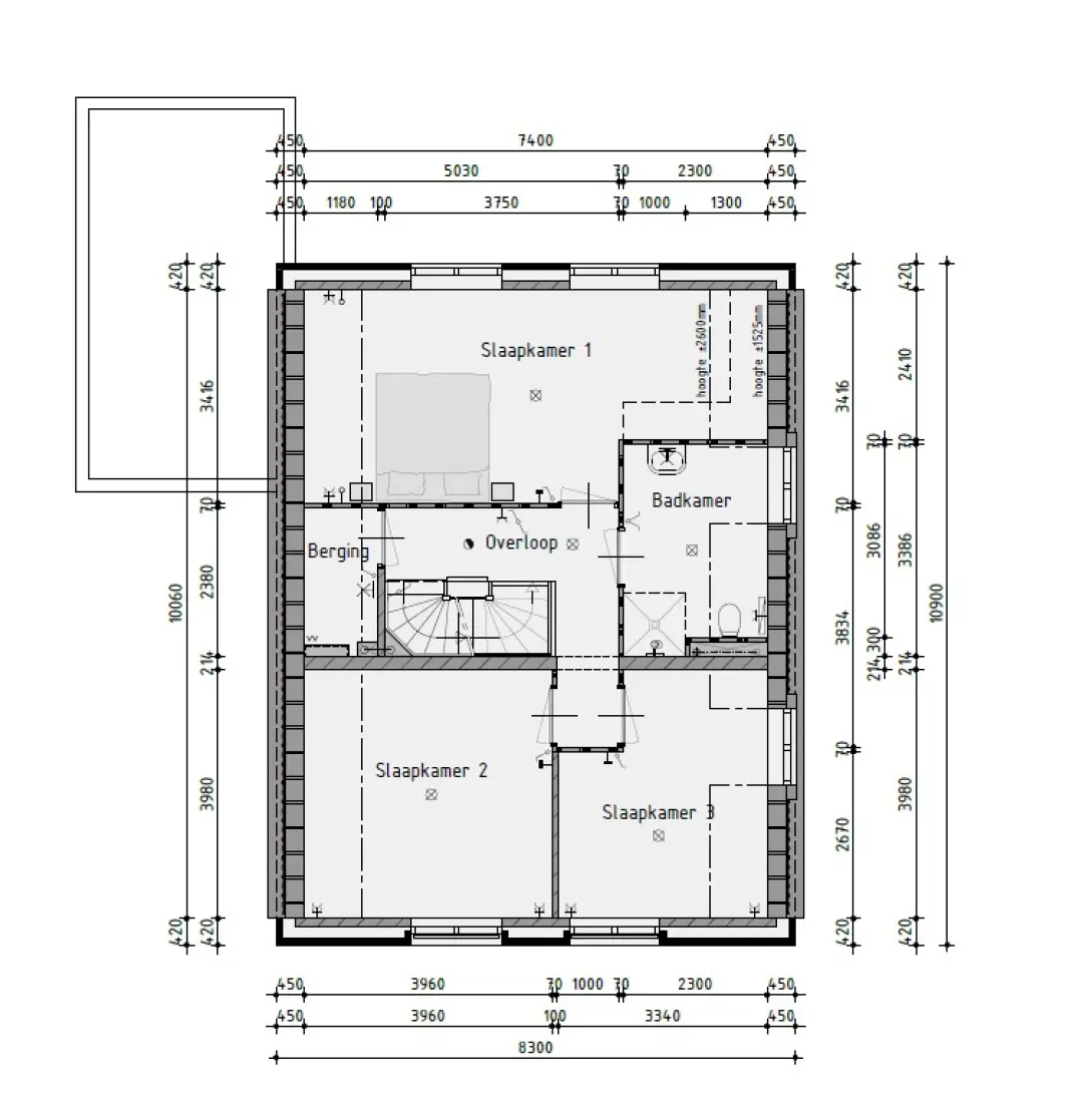 Via de trap komen we op de eerste verdieping waar we slaapkamer 1, 2 en 3 vinden. Dankzij haar ruime indeling, grote ramen en uitzicht over de tuin is vooral slaapkamer 1 een beauty! Ook vinden we hier de badkamer (die inclusief is!) en een extra berging. De trap leidt ons verder naar de tweede verdieping, waar een open zolderruimte te vinden is. Een extra kamer en thuiskantoor? Jij bent de baas!