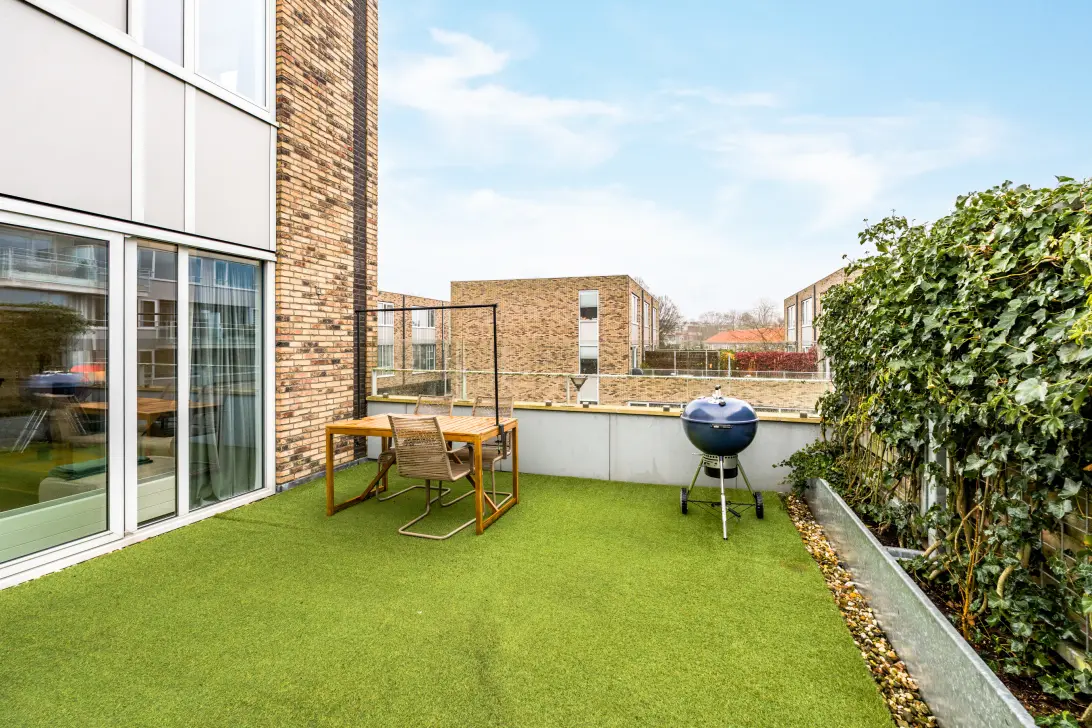 Dankzij deze heerlijke daktuin op het zuidwesten geniet je de hele dag van de zon. Het terras van ca. 27 m² biedt volop ruimte voor een gezellige zithoek of een barbecue op warme zomeravonden.