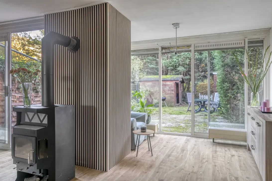 De woonkamer bevindt zich aan de tuinzijde en profiteert van een brede lichtinval en uitzicht op het groen. Dankzij de diepte van de tuinkavel voelt het geheel bijzonder ruimtelijk. De achtertuin — met zijn royale afmetingen van circa 13 meter diep en 7 meter breed — nodigt uit tot ontspannen. Achterin vind je een solide tuinhuis én een extra schuur, perfect voor opslag, klusprojecten of een rustige werkplek in het groen.