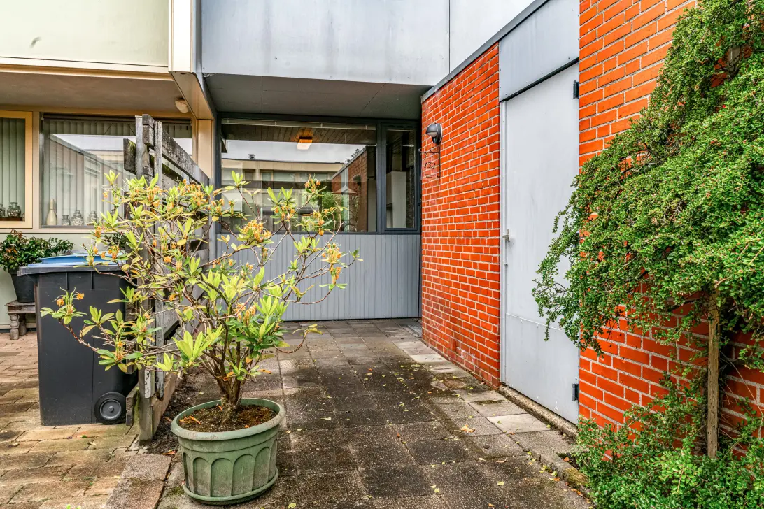 In de aangebouwde berging aan de voorzijde bevindt zich de meterkast (4 gr). Verder is deze uitgerust met de aansluiting voor de wasmachine en droger, de vloer is vinyl en heeft een deur naar buiten.
