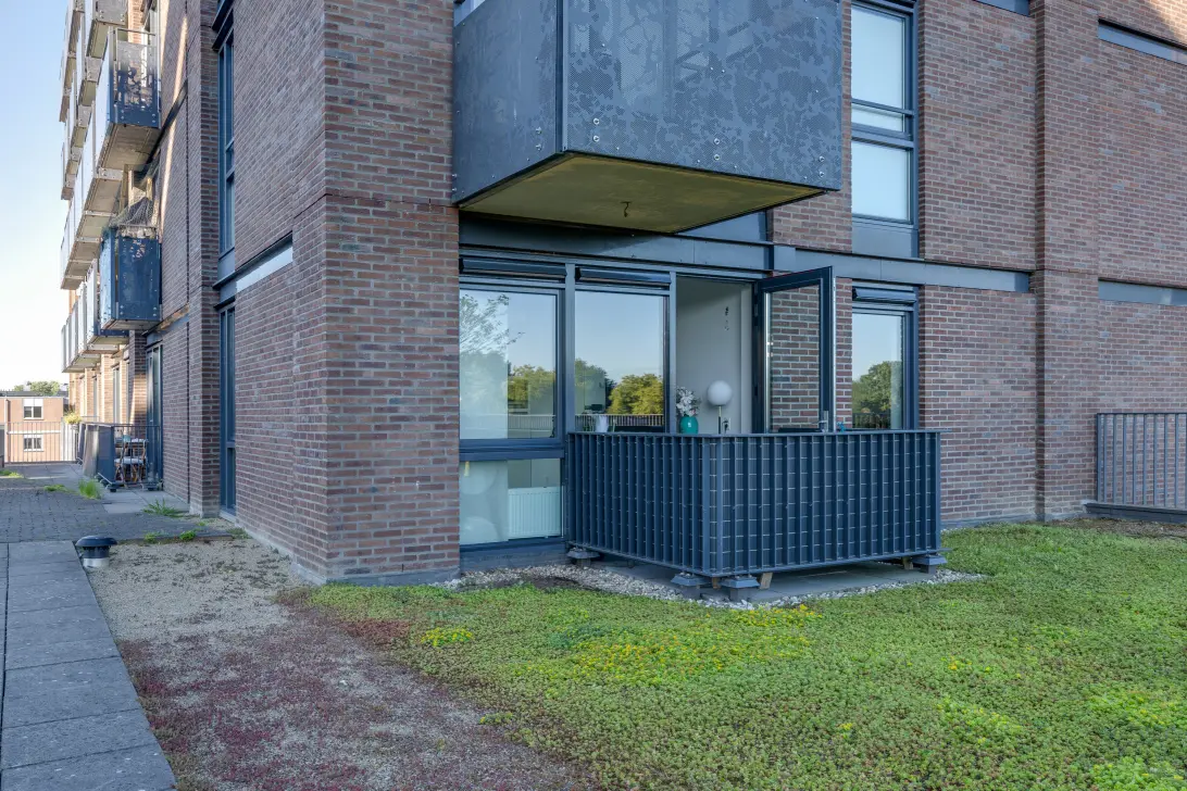 Vanuit de woning kijk je uit op de prachtig aangelegde binnentuin, die zich op dezelfde verdieping bevindt. Deze groene oase geeft je het gevoel van een privépark, ideaal om even te ontsnappen aan de drukte van de stad en te genieten van rust en ruimte. Voor de dagelijkse boodschappen kun je terecht in het winkelcentrum “De Banne” dat onder in het complex gelegen is.