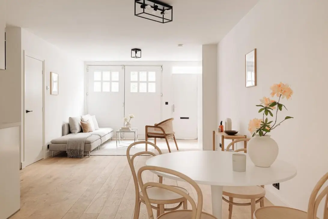 At the front, the original garage doors have been preserved. These can be fully opened — a charming, typically Jordaan feature. In summer, open the doors wide, place a small table and enjoy the lively street atmosphere.