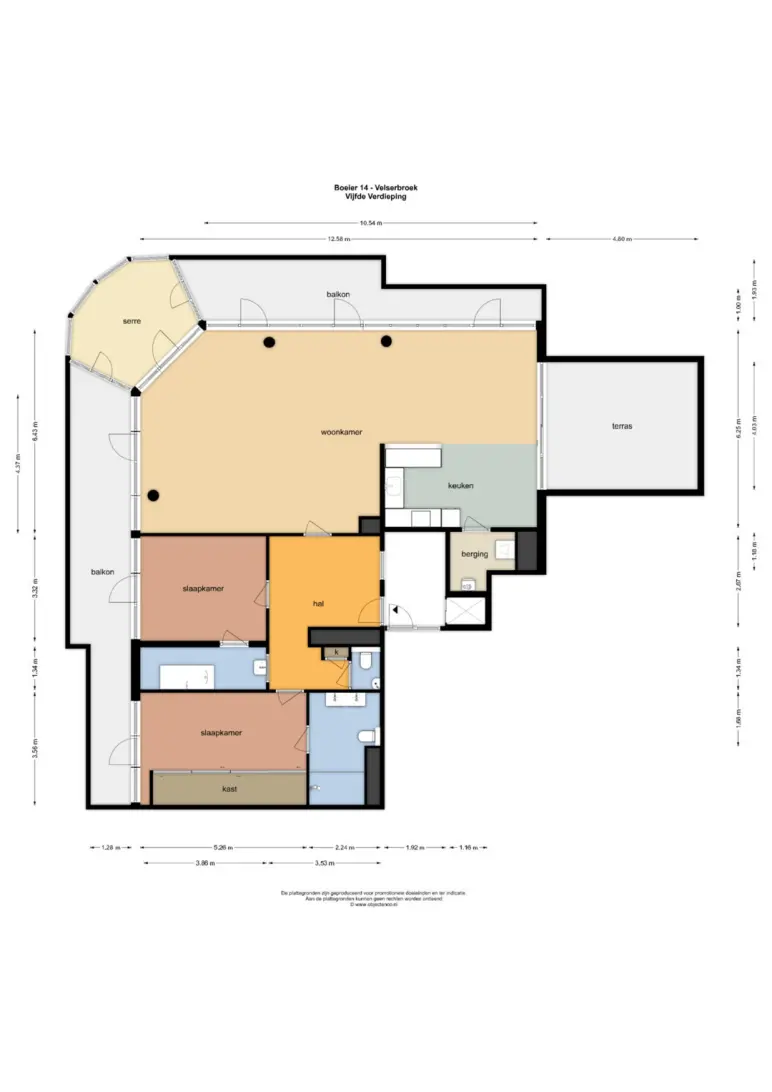 Het prachtig ingedeelde appartement biedt een royale woonkamer, serre en ruime woonkeuken. De 2 slaapkamers beschikken beide over een eigen badkamer. Het dakterras is gesitueerd op het zuidoosten (ochtend- en middagzon) en de balkons zijn gesitueerd op het noordwesten (middag- en avondzon) en noordoosten.