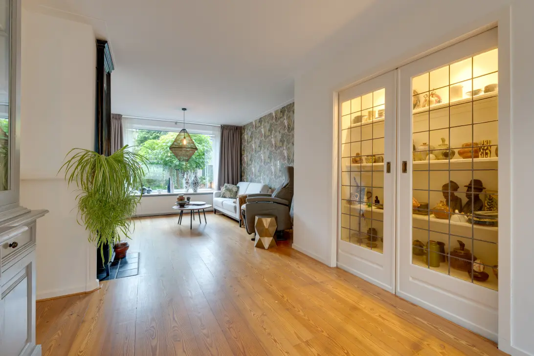 • Lichte woonkamer met openslaande deuren naar de tuin