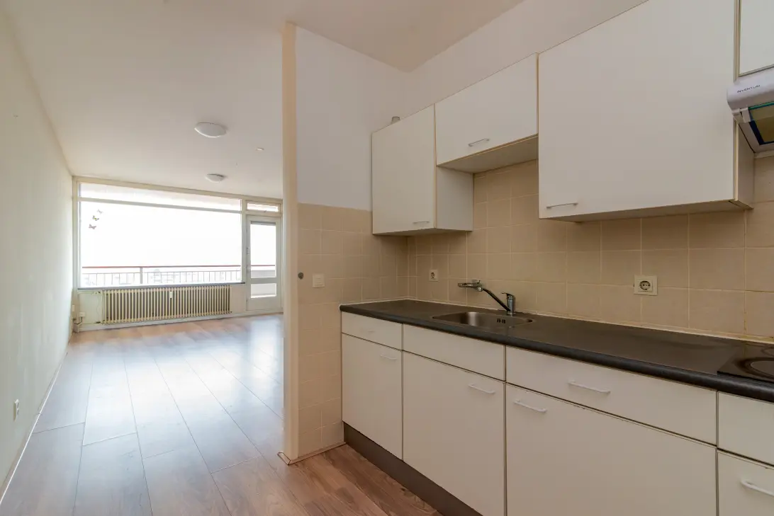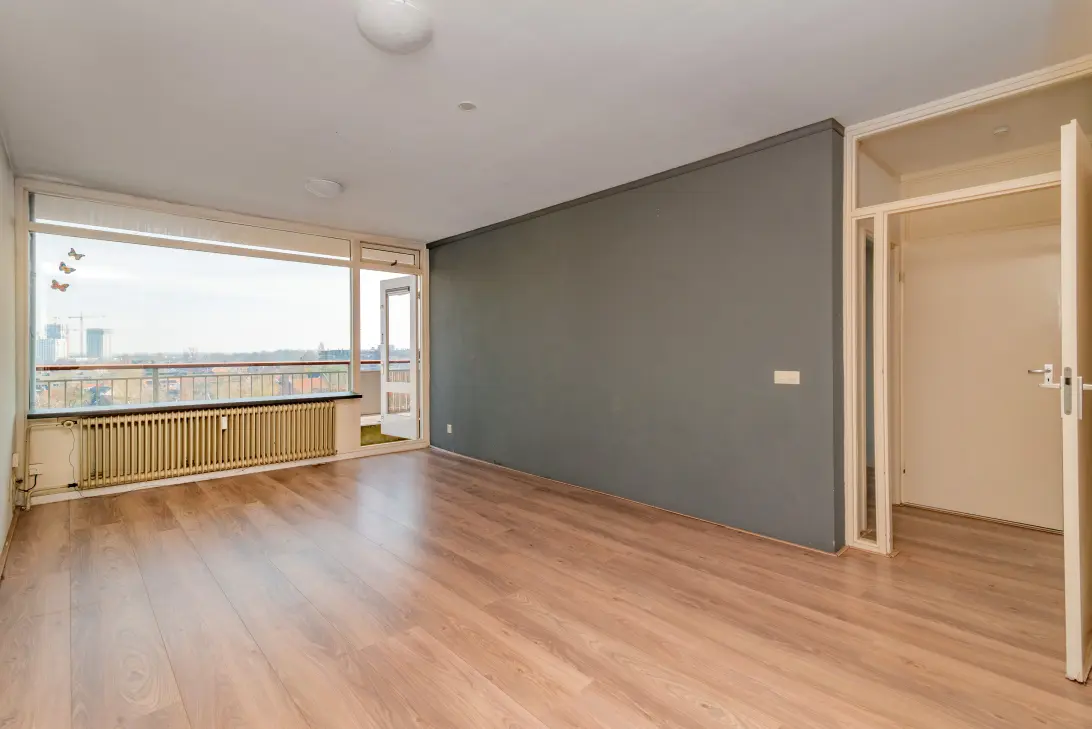 Bij binnenkomst kom je in de hal, die toegang biedt tot alle ruimtes van de woning. De woonkamer is heerlijk licht en voelt direct prettig aan. Er is genoeg ruimte voor een gezellige zithoek en een eettafel. Grote ramen zorgen voor veel daglicht en een fijn uitzicht. Vanuit de woonkamer stap je zo het balkon op, een fijne plek om even buiten te zitten.