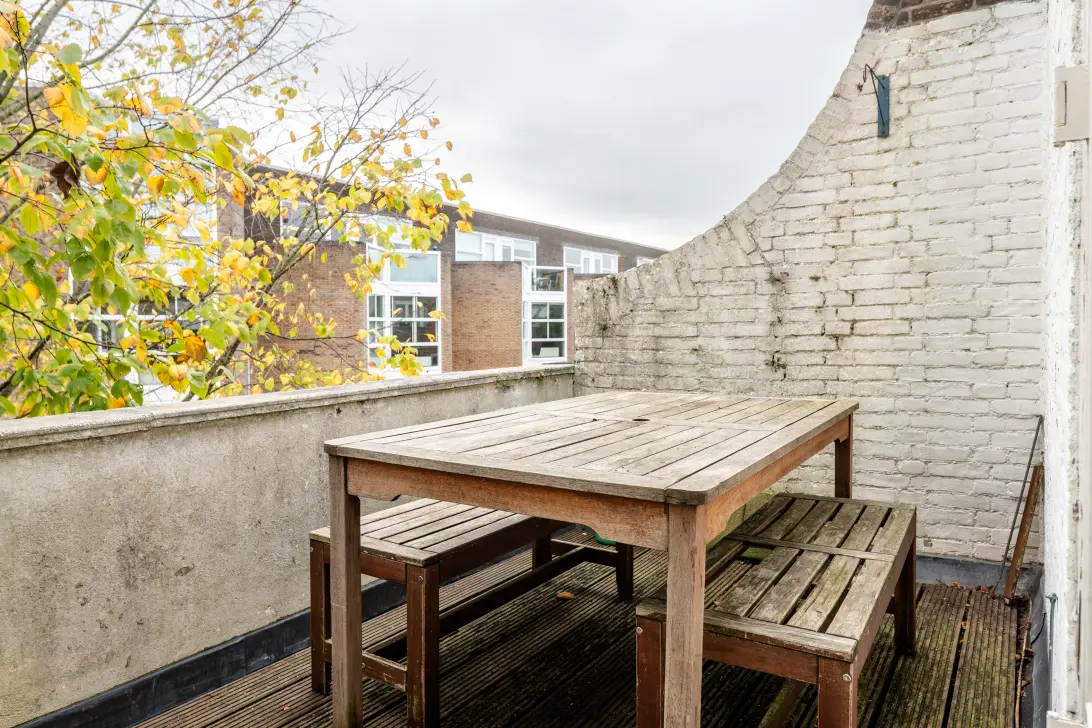 Via de eigen entree op de derde verdieping kom je binnen in de hal. Aan de achterzijde liggen de ruime slaapkamer, de keuken en een tweede slaapkamer. Aan de voorzijde bevindt zich de woonkamer, die toegang geeft tot het terras. De derde kamer grenst eveneens aan het terras en biedt directe toegang tot de badkamer en de was-droogopstelling. Het terras van 8 m² ligt op het oosten en vangt in de zomer verrassend lang zon.