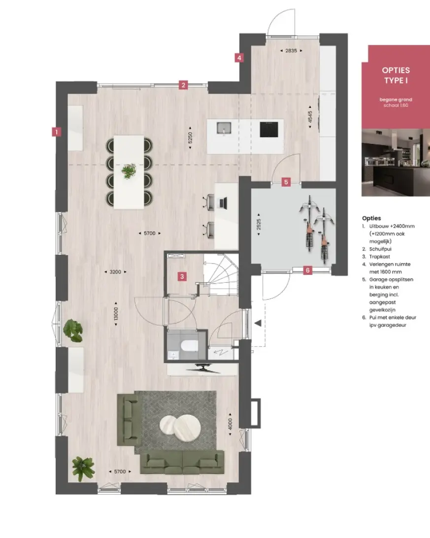 Bekijk de optieplattegronden hieronder voor alle mogelijkheden bij deze woning.