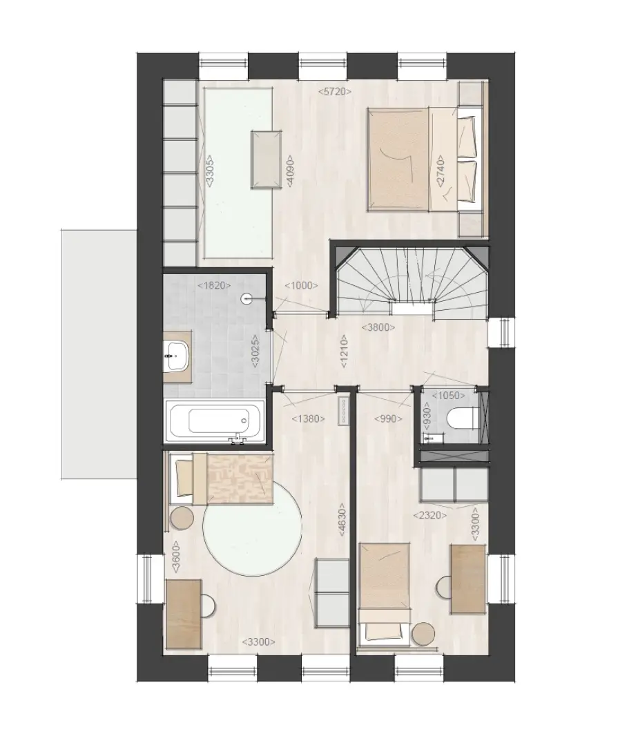 Op de eerste verdieping heeft de woning drie slaapkamers, een ruime badkamer en apart toilet. Op de twee verdieping een vrij indeelbare zolder met techniek ruimte en aansluiting voor wasmachine en droger.