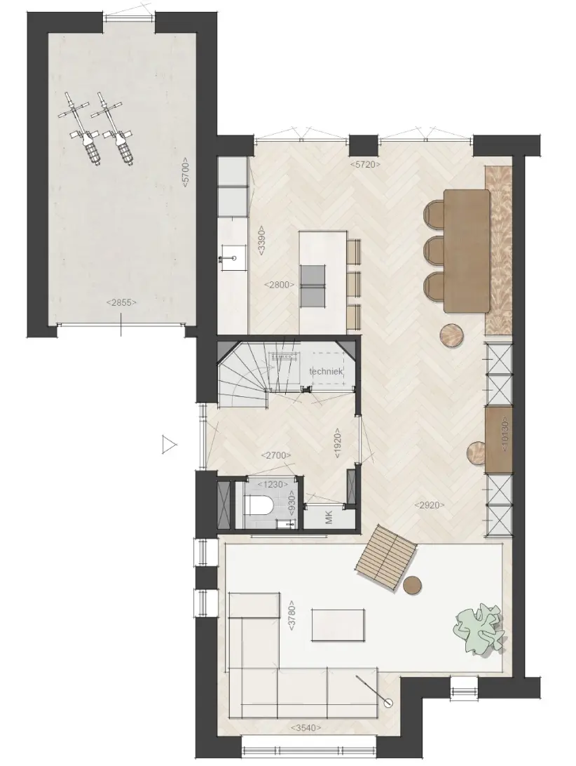 - Energieneutraal (BENG 2=0, label A++++) met vloerverwarming, -koeling, warmtepomp en zonnepanelen