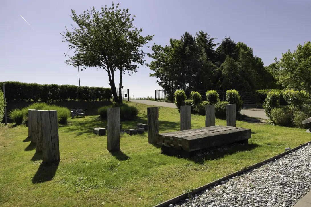 The living room invites tranquility, while the large windows flow seamlessly into the garden, which feels like a natural extension of the interior. Here, you don't just live with nature, but within it. From your living room, you look out over meadows where pheasants roam in the mornings and rabbits dart through the grass: a daily scene that never gets old. This place exudes peace, space, and freedom. Each season the landscape changes color, and you're right in the middle of it. A work of art!