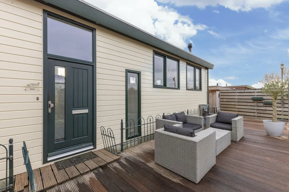 De tuin aan de voorkant van het schip geeft ruimte om twee auto’s op het erf te parkeren. Tevens is er een heerlijk terras met privacy en geweldig uitzicht. De steiger is in 2020 vervangen met hardhouten Bankirai vlonderplanken en voorzien van 8 meter hardhouten palen met betonnen opzetstukken. Ook is de beschoeiing in 2020 vernieuwd. In de Redceder houten, geïsoleerde en verwarmde berging met vliering is genoeg ruimte om fietsen, gereedschap en de tuinkussens op te bergen. De tuin is eigendom van gemeente Zaanstad.