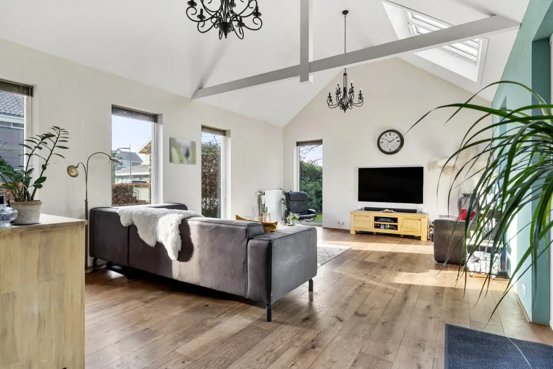 Indeling: Zodra u binnenstapt, ervaart u het. De ruime hal verwelkomt u met een open sfeer, waarna de woonkamer zich als een lichte, royale leefruimte aan u presenteert. Dankzij de prachtige lichtstraat (geplaatst in 2022) baadt de ruimte in daglicht. Het hoge plafond geeft een heerlijk vrij gevoel, alsof binnen en buiten naadloos in elkaar overlopen. De houten vloer, de strakke afwerking en de open verbinding tussen woonkamer, eetkamer en keuken maken dit tot het bruisende hart van het huis. Hier kookt u met gemak een driegangendiner terwijl u in gesprek blijft met uw gasten of uw spelende kinderen in het oog kunt houden. De praktische keuken in U-opstelling. is van alle gemakken voorzien. Vanuit de woonkamer stapt u zo de verzorgde tuin in, waar rust, groen en gezelligheid de hoofdrol spelen.