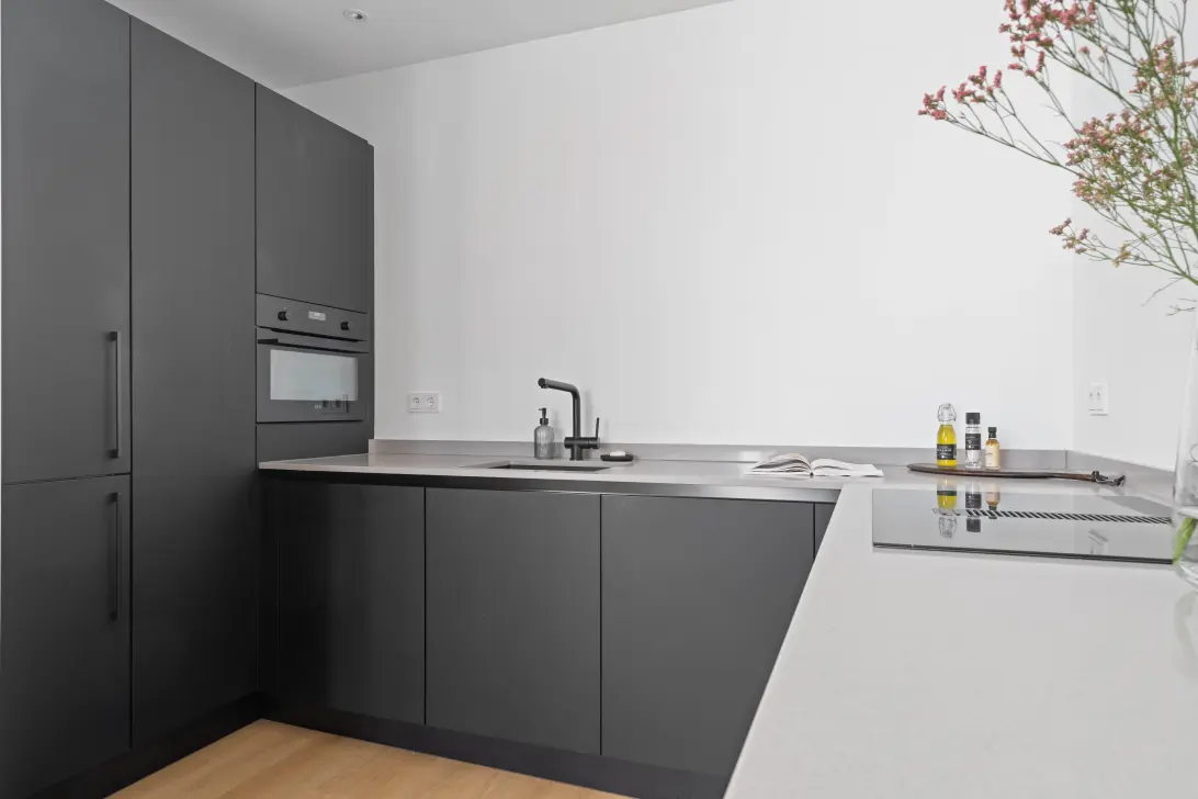 Via het gemeenschappelijke trappenhuis bereik je de entree op de derde verdieping. Een kleine overloop en interne trap brengen je naar de vierde verdieping. Je komt binnen in de mooie woonkamer met open keuken die voorzien is van alle wenselijke inbouwapparatuur. Aan de achterzijde is een goed bemeten slaapkamer. Centraal in de woning is de badkamer gesitueerd en deze is voorzien van een douche, toilet en wastafel. Tot slot is er nog een inbouwkast onder de trap met de cv-opstelling en extra bergruimte.
