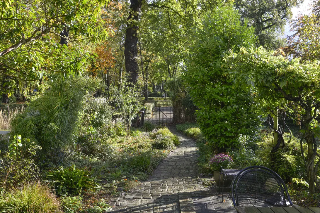 * Hoofdtuin aan de voorzijde, op het zuidoosten gelegen en grotendeels omzoomd door groen.