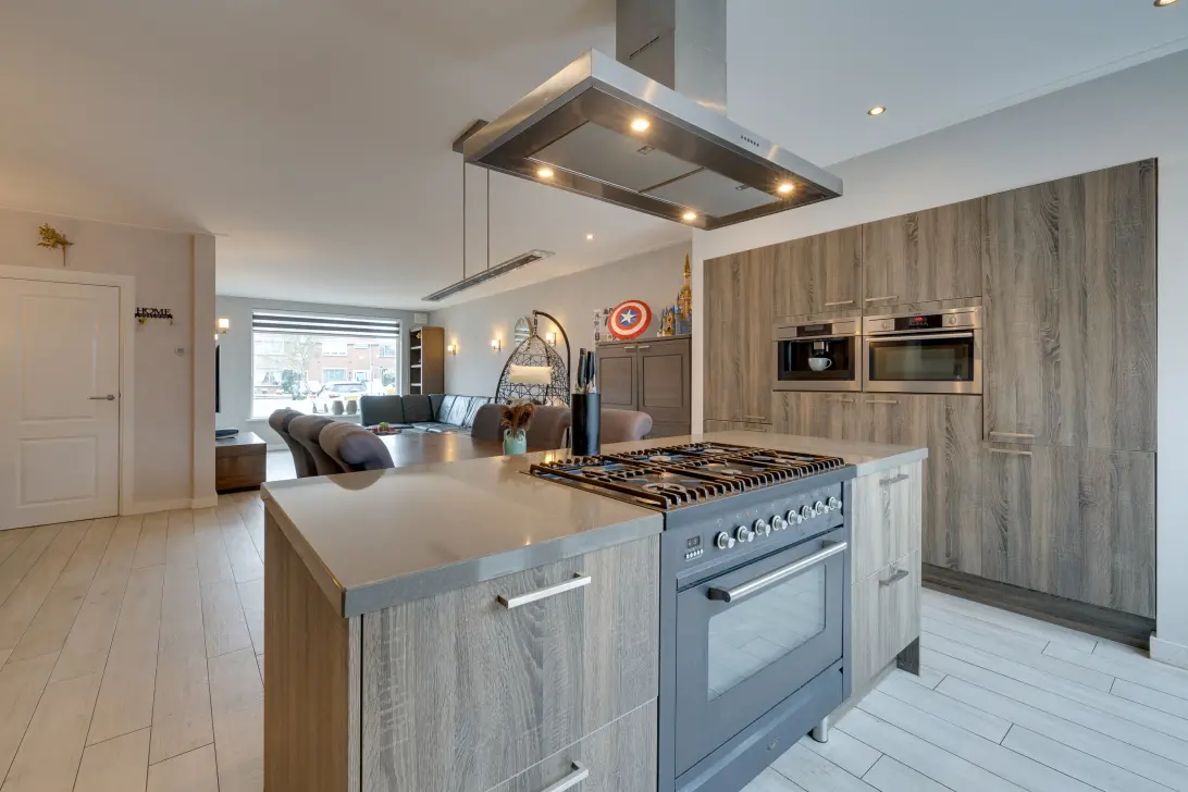 • De begane grondvloer is vernieuwd middels een renovatievloer met beton en geïsoleerd en de woonkamer is aan de achterzijde over de volle breedte uitgebouwd en voorzien van een woonkeuken met kookeiland en een aangebouwde bijkeuken